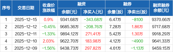 东南网架:融资净偿还343.68万元,融资余额9341.68万元(12-15)