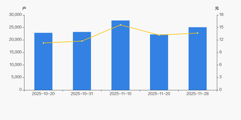 截至2025年11月28日,公司最新总股本为2.15亿股,其中流通股本为2.14亿股。户均持有流通股数量由上期的9639股下降至8539股,户均流通市值11.66万元。