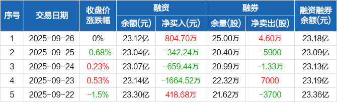 宁波银行:融资净买入804.7万元,融资余额23.12亿元(09-26)