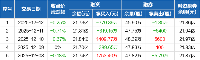 宁波银行:融资净偿还770.89万元,融资余额21.73亿元(12-12)