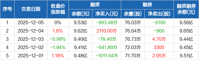 钛能化学:融资净偿还893.48万元,融资余额9.53亿元(12-05)