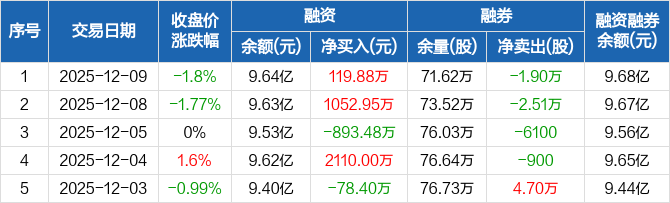 钛能化学:融资净买入119.88万元,融资余额9.64亿元(12-09)