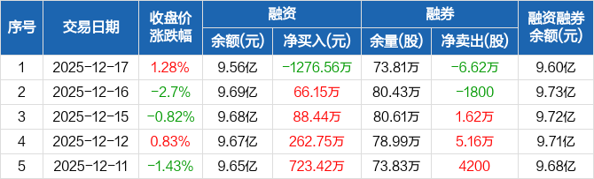钛能化学:融资净偿还1276.56万元,融资余额9.56亿元(12-17)