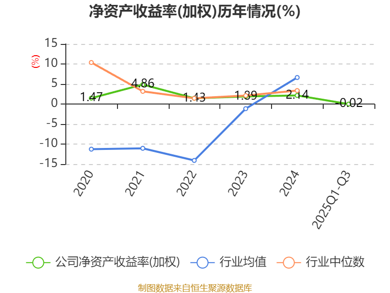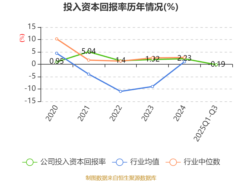 盈利能力方面, 2025年前三季度公司加权平均净资产收益率为-0.02%,同比下降1.13个百分点。公司2025年前三季度投入资本回报率为-0.19%,较上年同期下降1.33个百分点。