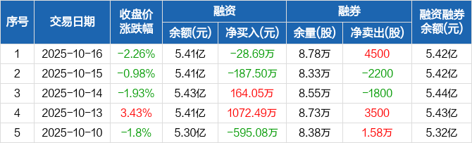 西部材料:融资净偿还28.69万元,融资余额5.41亿元(10-16)