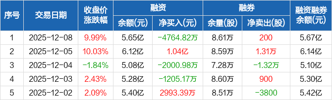 西部材料:融资净偿还4764.82万元,融资余额5.65亿元(12-08)