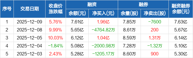 西部材料:融资余额7.61亿元,创历史新高(12-09)