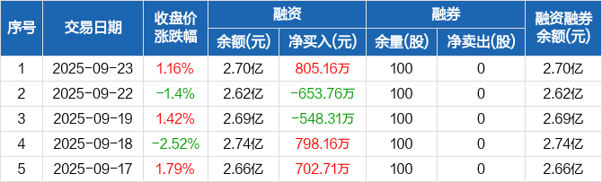 通润装备:融资净买入805.16万元,融资余额2.7亿元(09-23)