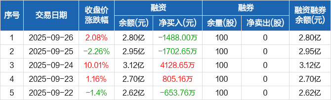 通润装备:融资净偿还1488万元,融资余额2.8亿元(09-26)