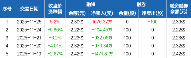 通润装备:融资净买入1676.37万元,融资余额2.39亿元(11-25)