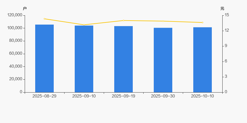 2025年8月29日至今,公司股东户数有所下降,区间跌幅为3.97%。2025年8月29日至2025年10月10日区间股价下降5.02%。