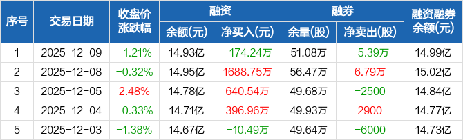广电运通:融资净偿还174.24万元,融资余额14.93亿元(12-09)