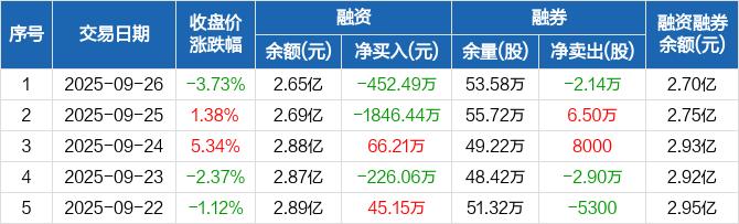 石基信息:融资净偿还452.49万元,融资余额2.65亿元(09-26)