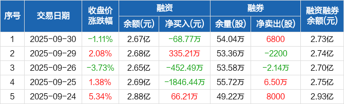 石基信息:融资净偿还68.77万元,融资余额2.67亿元(09-30)