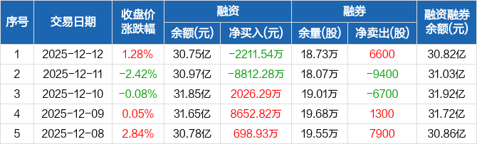 通富微电:融资净偿还2211.54万元,融资余额30.75亿元(12-12)
