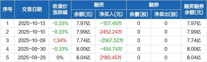 正邦科技:融资净偿还157.49万元,融资余额7.97亿元(10-13)