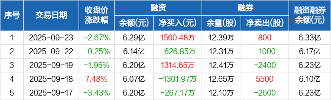 汉钟精机:融资净买入1560.48万元,融资余额6.29亿元(09-23)