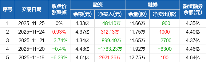 汉钟精机:融资净偿还481.1万元,融资余额4.33亿元(11-25)