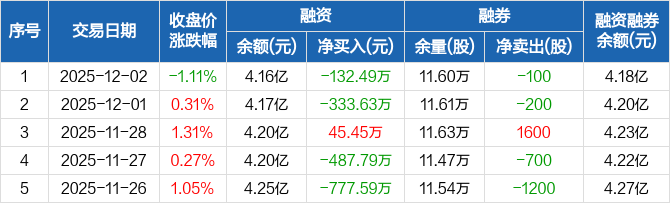 汉钟精机:融资净偿还132.49万元,融资余额4.16亿元(12-02)