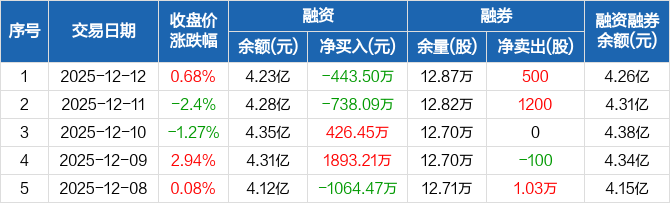 汉钟精机:融资净偿还443.5万元,融资余额4.23亿元(12-12)