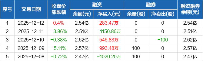 常铝股份:融资净买入283.47万元,融资余额2.54亿元(12-12)
