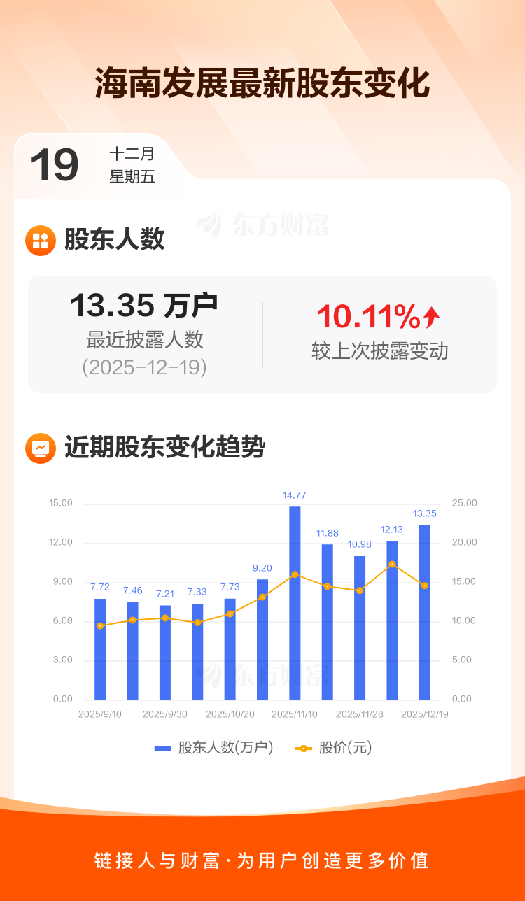 海南发展:截至12月19日最新股东户数13.35万户,较上期增加10.11%