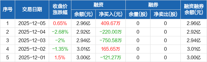 红宝丽:融资净买入409.67万元,融资余额2.96亿元(12-05)