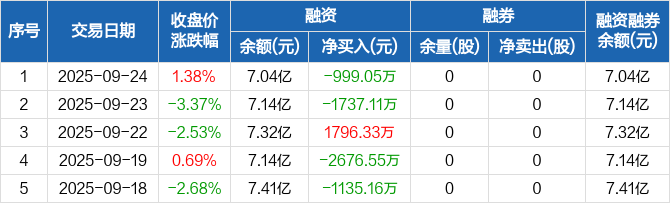 东方锆业:融资净偿还999.05万元,融资余额7.04亿元(09-24)
