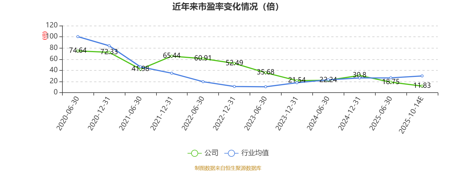 以本次披露业绩预告均值计算,公司近年市盈率(TTM)图如下所示: