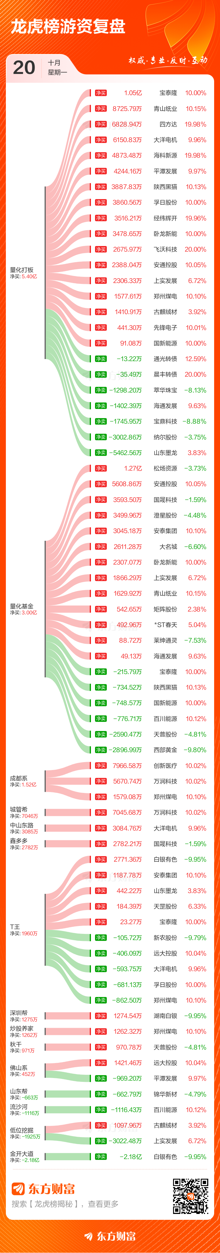 10月20日龙虎榜复盘:“成都系”7966.58万元净买入创新医疗