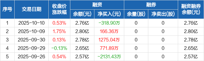 御银股份:融资净偿还318.9万元,融资余额2.76亿元(10-10)