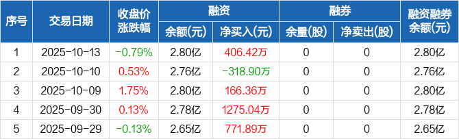 御银股份:融资净买入406.42万元,融资余额2.8亿元(10-13)