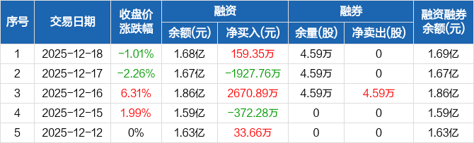 御银股份:融资净买入159.35万元,融资余额1.68亿元(12-18)
