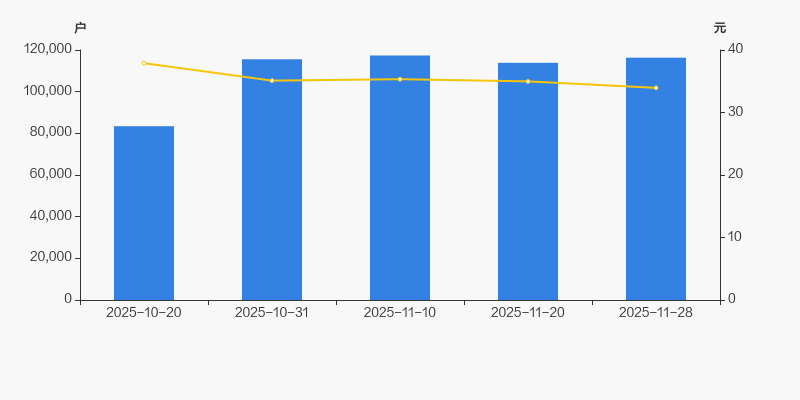 2025年10月20日至今,公司股东户数显著增长,区间涨幅为39.42%。2025年10月20日至2025年11月28日区间股价下降10.42%。