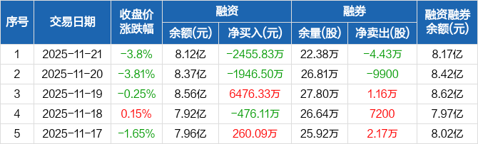 纳思达:融资净偿还2455.83万元,融资余额8.12亿元(11-21)