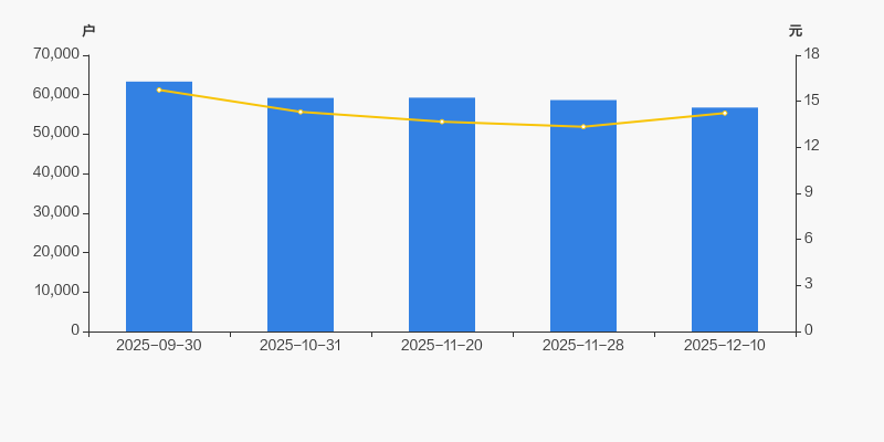 2025年9月30日至今,公司股东户数显著下降,区间跌幅为10.40%。2025年9月30日至2025年12月10日区间股价下降9.59%。