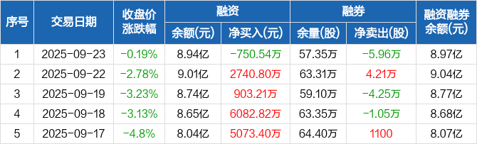 怡亚通:融资净偿还750.54万元,融资余额8.94亿元(09-23)