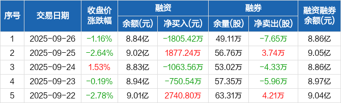 怡亚通:融资净偿还1805.42万元,融资余额8.84亿元(09-26)