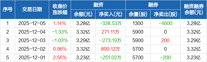 中光学:融资净偿还338.53万元,融资余额3.28亿元(12-05)