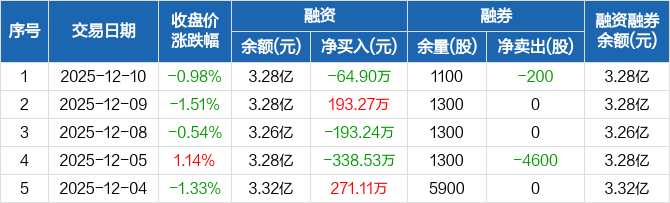 中光学:融资净偿还64.9万元,融资余额3.28亿元(12-10)