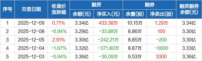 劲嘉股份:融资净买入433.38万元,融资余额3.34亿元(12-09)