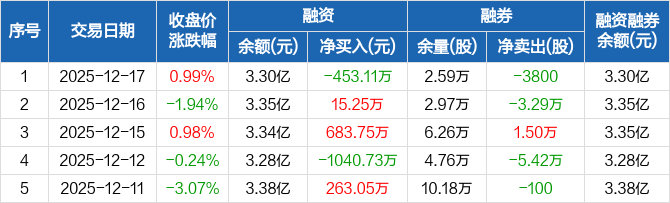 劲嘉股份:融资净偿还453.11万元,融资余额3.3亿元(12-17)