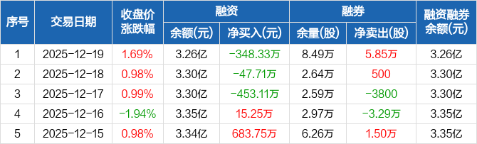 劲嘉股份:连续3日融资净偿还累计849.15万元(12-19)
