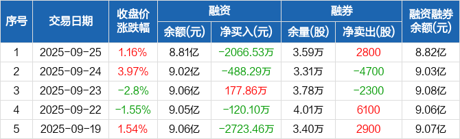 融捷股份:融资净偿还2066.53万元,融资余额8.81亿元(09-25)