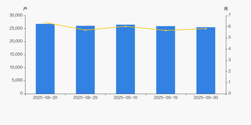 截至2025年9月30日,公司最新流通股本为2.62亿股。户均持有流通股数量由上期的1.01万股上升至1.02万股,户均流通市值5.97万元。