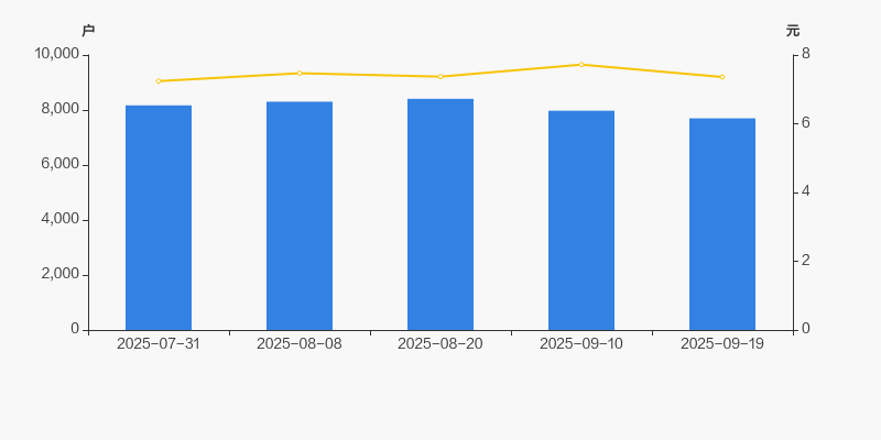 2025年7月31日至今,公司股东户数有所下降,区间跌幅为5.78%。2025年7月31日至2025年9月19日区间股价上涨1.66%。
