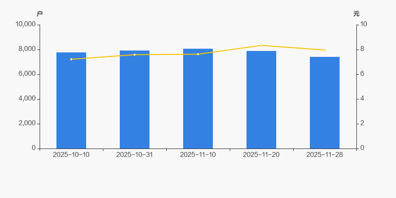 2025年10月10日至今,公司股东户数有所下降,区间跌幅为4.64%。2025年10月10日至2025年11月28日区间股价上涨10.40%。