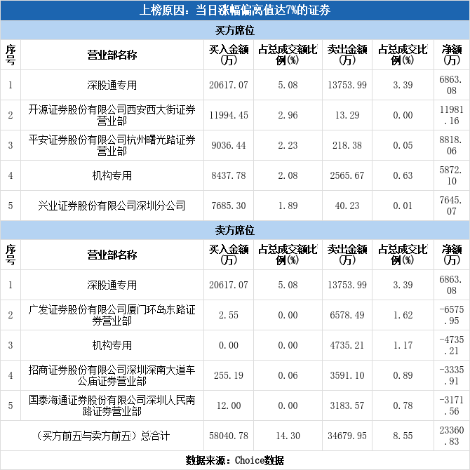 今日龙虎榜单上出现了深股通的身影,占据了买一、卖一的位置,净买入6863.08万元,占当日成交总额的1.69%,是获深股通净买额最高的个股。除此之外深股通还参与到了中兴通讯、正邦科技、特发信息等8只个股中,其中仅雪人集团1家呈现深股通净买入,净买额为4308.24万元;7家呈现深股通净卖出,遭净卖出最高的为中兴通讯,净卖额1.06亿元。