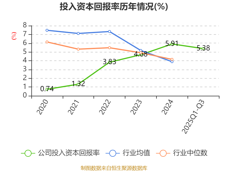 盈利能力方面, 2025年前三季度公司加权平均净资产收益率为6.5%,同比上升0.94个百分点。公司2025年前三季度投入资本回报率为5.38%,较上年同期上升0.69个百分点。