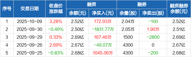 海利得:融资净买入172.93万元,融资余额2.52亿元(10-09)
